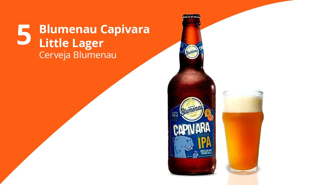 Blumenau Capivara Little Lager – Cerveja Blumenau: Leve, divertida e com nome simpático, a Capivara Little Lager tem baixo teor alcoólico e amargor suave, ideal para quem quer aproveitar a festa com moderação e muito sabor.